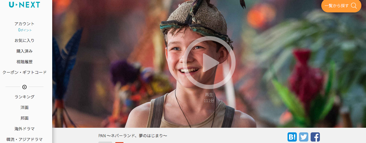 吹き替えで実写版ピーターパンを無料で見ようと思ったのが間違いだったのか・・・ と思い諦めかけたところ友達に教わったのがコレ!