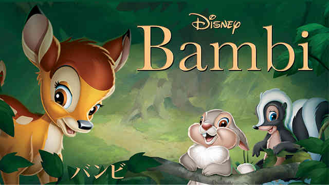 「白雪姫」のウォルト・ディズニーが製作した、1942年度テクニカラー長篇漫画。フェリックス・ザルテンの同名の小説からパース・ピアースが物語を構成、デイヴィッド・D・ハンドが総監督に当たった。なお本映画は改良されたマルティプレーン・キャメラを使用、完成までに六年の歳月と四十万枚の着色下絵を要したという。ある春の朝、森の大王、大鹿のグレート・スタッグの子供としてバンビが生れた。バンビは仔兎のトンパーやスカンクのフラワーと友人になり、また牝の仔鹿ファリンとも仲良しになった。夏、秋、冬、バンビはすくすくと成長したが、翌春母を人間に連れ去られた。恋の季節で、彼もファリンと恋におち、彼女に横恋慕した牡鹿ロノと決闘までした。晩秋、再び人間が森に押しよせ、その夜キャンプから出た火は森を包んだ。妻のファリンを助...